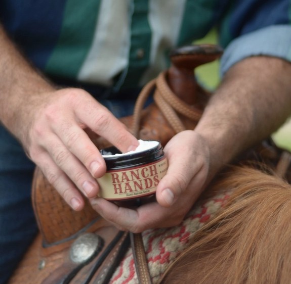 Ranch Hands Lotion (4oz jar) The ultimate solution for dry, rough, and damaged hands. This fragrance-free formula is enriched with the natural goodness of goat milk, known for its nourishing and hydrating properties. Perfect for most skin types, this hand repair balm absorbs quickly, without leaving any greasy residue.